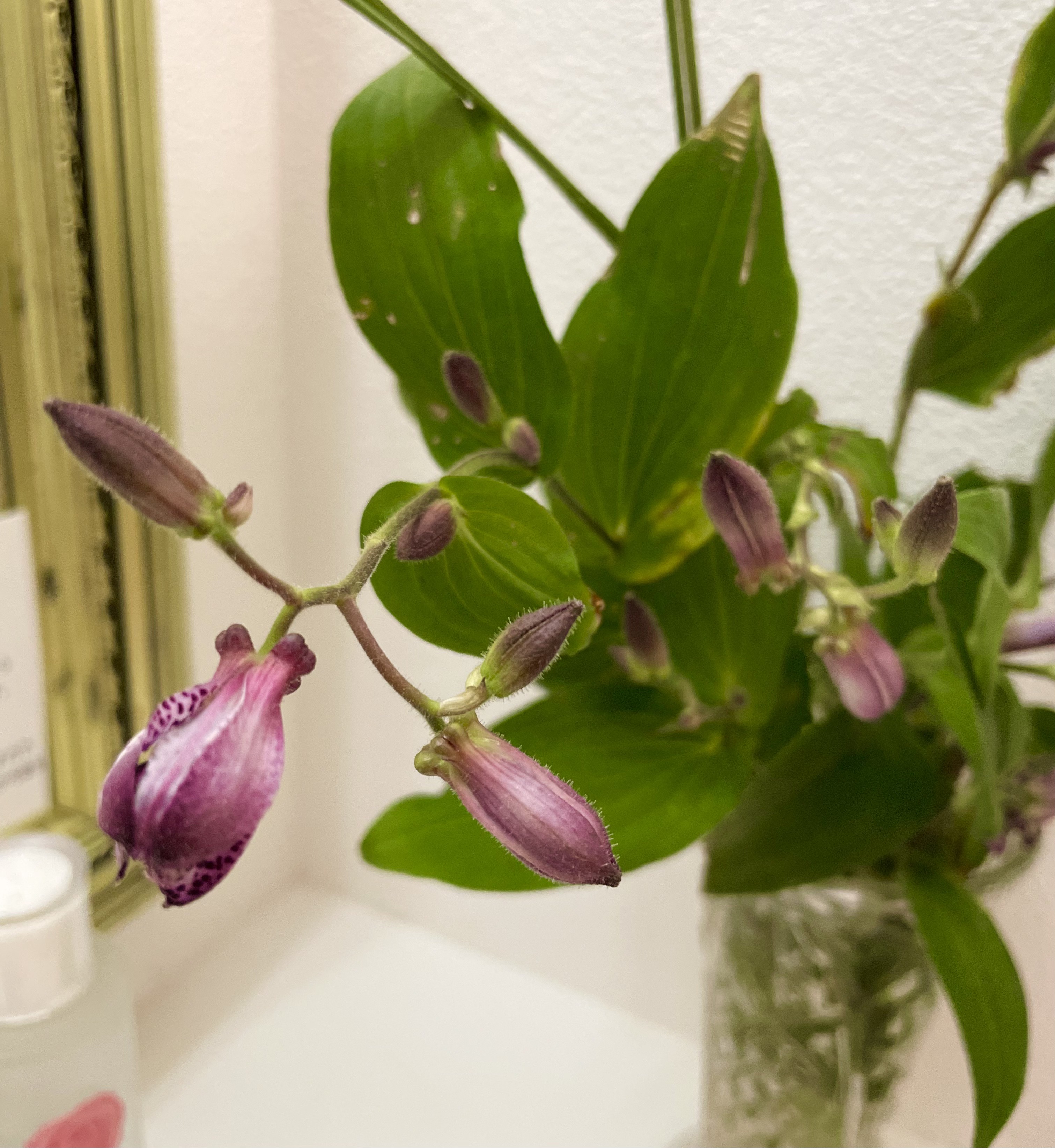 野鳥のホトトギスの胸の模様に似ているからか、この名前のついている山野草です。