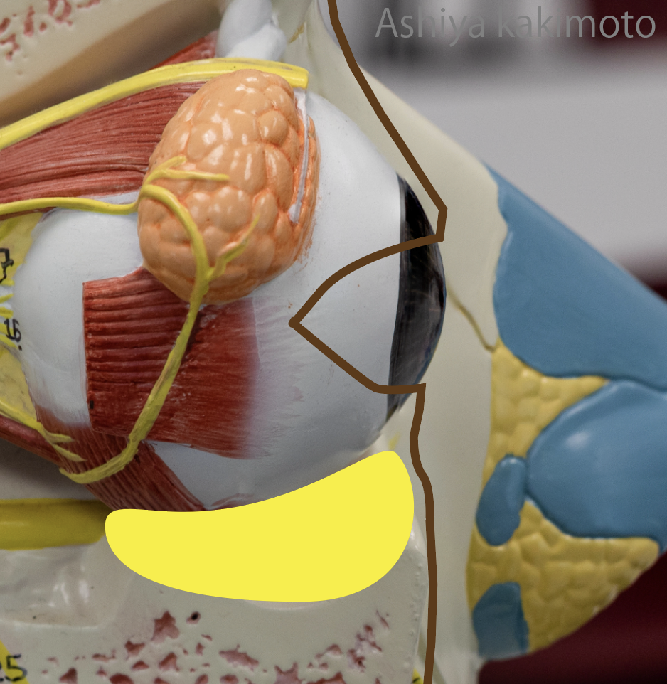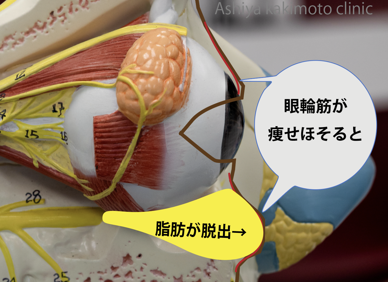眼輪筋と眼窩底脂肪の関係についてもお話しします。