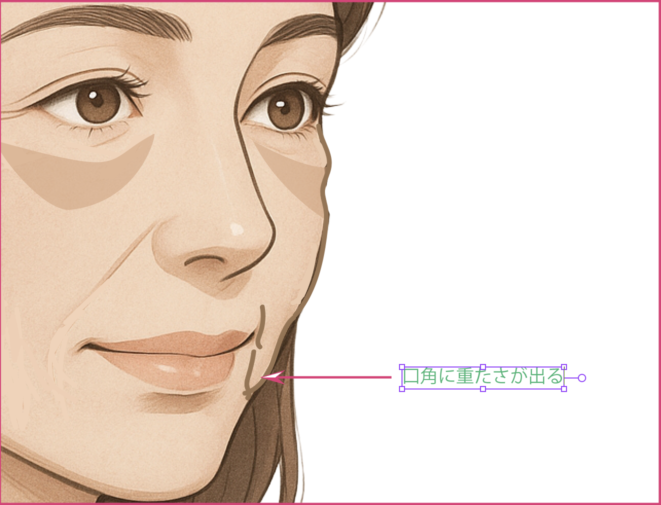 頬の高さを出すことで、口元もリフトアップします。