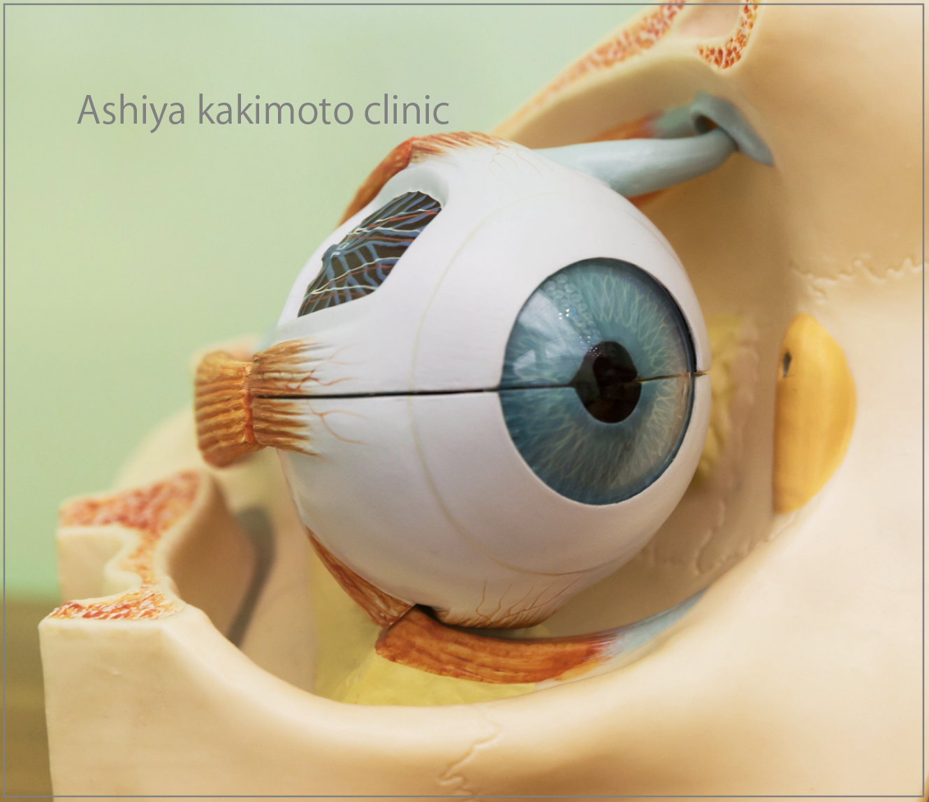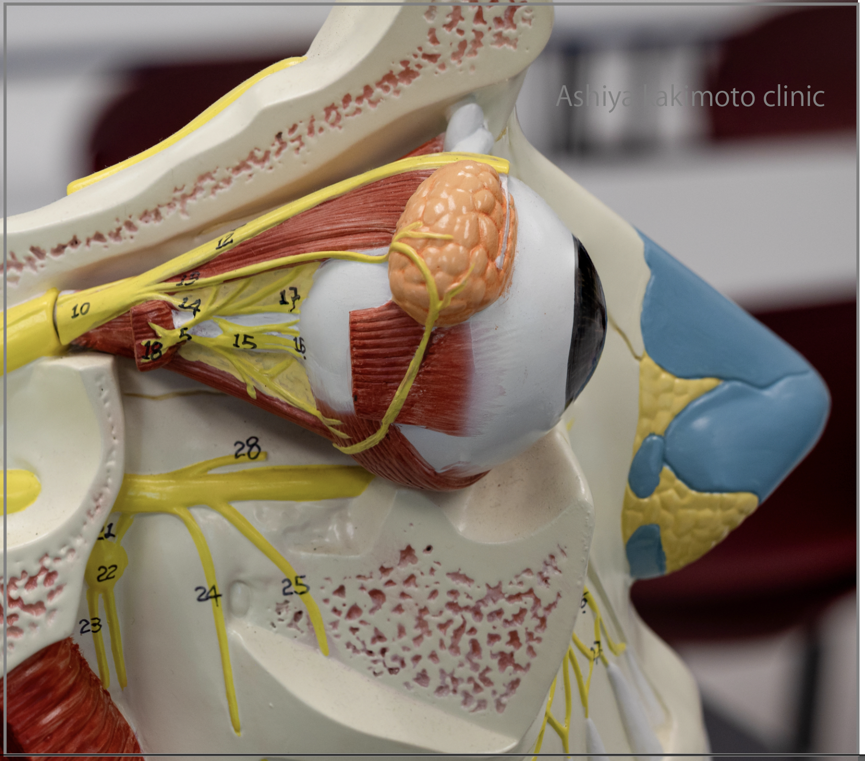 目のモデルです。眼窩という洞窟の中に大切な眼球が入っています。